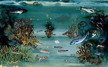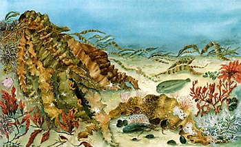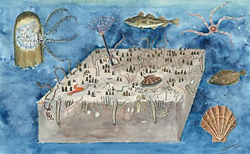 Knähaken utanför Helsingborg. Förändringar av den marina faunan mot tiden (145 x 60 cm) |