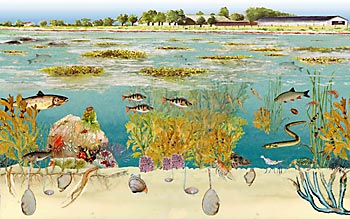 Brackvattensamhället på någon meters djup utanför Malmö och Köpenhamn. |