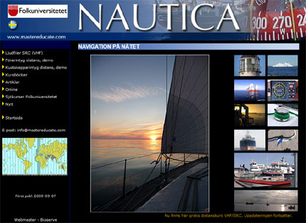 Computerbased training, available on CD, USB and download. Nautical navigation and seamanship (Swedish). 2018Computer based training in navigation. Includes all parts required for "Förarintyg and Kustskepparintyg", navigation degrees for yacht owners in Sweden. The program includes animations, photos, drawings, video and sound and is a great complement to standard navigation literature. Show example page(För mer information skicka E-post) |